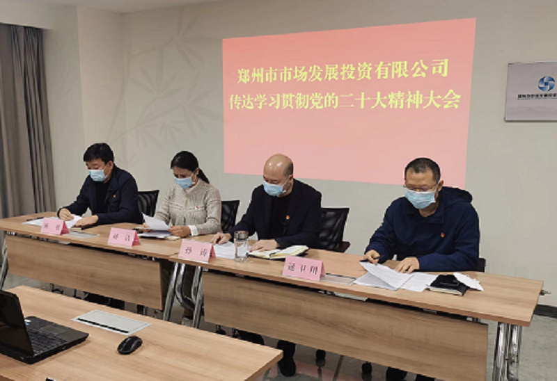 11月9日上午,鄭州市市場發(fā)展投資有限公司召開傳達(dá)學(xué)習(xí)黨的二十大精神大會。會議指出,認(rèn)真學(xué)習(xí)宣傳貫徹黨的二十大精神是當(dāng)前和今后一個(gè)時(shí)期的首要政治任務(wù),要深刻領(lǐng)悟“兩個(gè)確立”的決定性意義,堅(jiān)決做到“兩個(gè)維護(hù)”,更加緊密團(tuán)結(jié)在以習(xí)近平同志為核心的黨中央周圍,以“五個(gè)牢牢把握”為重點(diǎn),深刻領(lǐng)會和理解把握黨的二十大報(bào)告的豐富內(nèi)涵和精髓要義,切實(shí)把思想和行動統(tǒng)一到黨的二十大精神上來,以更加昂揚(yáng)的精神狀態(tài),努力創(chuàng)造新的更大業(yè)績,在鄭州國家中心城市現(xiàn)代化建設(shè)中展現(xiàn)國企更大擔(dān)當(dāng)。會議以視頻形式召開,公司領(lǐng)導(dǎo)班子成員,各中心、子公司主要負(fù)責(zé)人及相關(guān)人員參加會議。